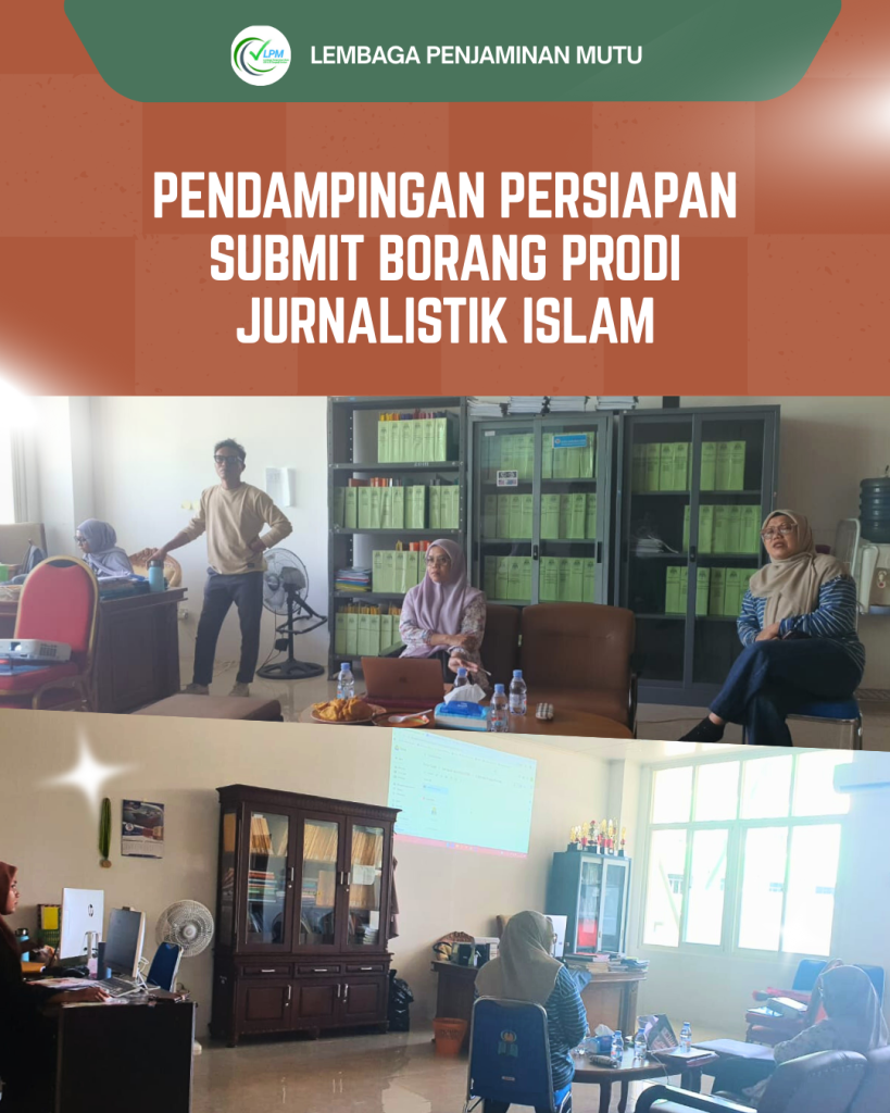 LPM melakukan pendampingan persiapan submit borang akreditasi pada program studi Jurnalistik Islam (Juris) Fakultas Ushuluddin dan Dakwah (FUSWAH) guna memastikan kelengkapan dan kesiapan borang akreditasi.
